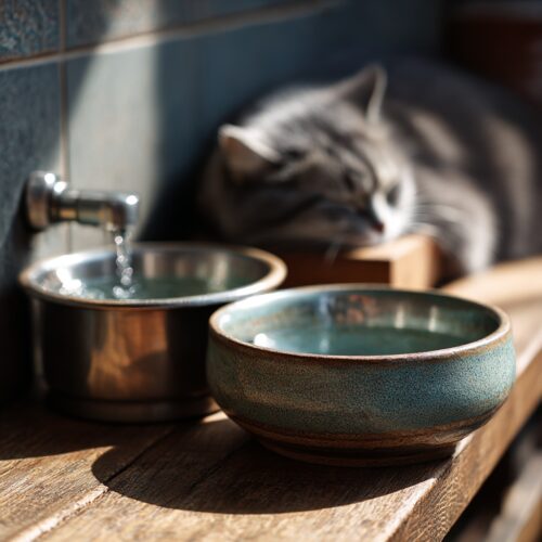 - Bebederos tipo fuente para estimular el consumo de agua (a muchos gatos les gusta el agua en movimiento).