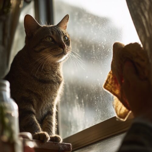 • Baños y bodegas. Revisa moho y límpialo con productos aptos para mascotas, ventilando bien. Los irritantes de limpieza pueden provocar estornudos y ojos llorosos si se inhalan; úsalo siempre siguiendo etiqueta y con tu gato lejos mientras seca el área (PetMD).