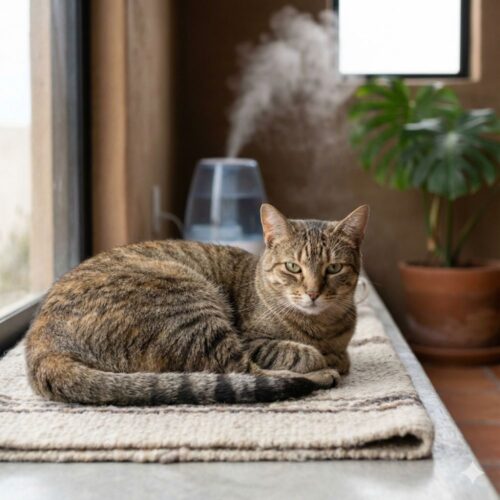 La humedad adecuada en casa es una herramienta sencilla pero muy poderosa para cuidar la salud respiratoria de tu gato durante el invierno. El aire extremadamente seco, típico de las noches frías con calefacción encendida, reseca las mucosas, favorece estornudos y congestión y puede empeorar enfermedades respiratorias previas. Mantener la humedad alrededor de 40–50%, ya sea con un humidificador de vapor frío bien mantenido o con métodos naturales como recipientes con agua y fuentes decorativas, puede marcar una diferencia enorme en su comodidad diaria.